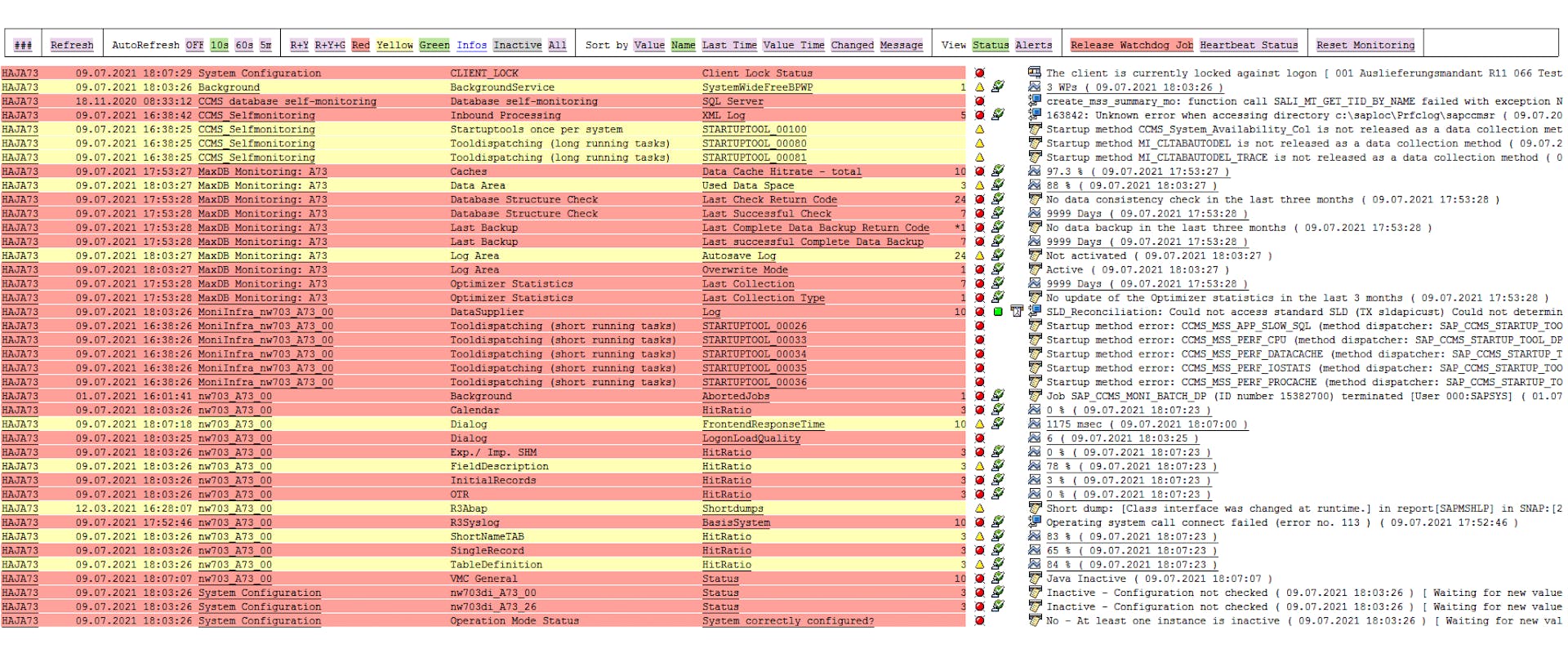 Auto-refresh monitor of the system landscape